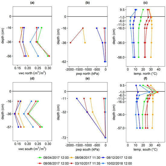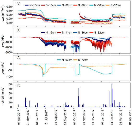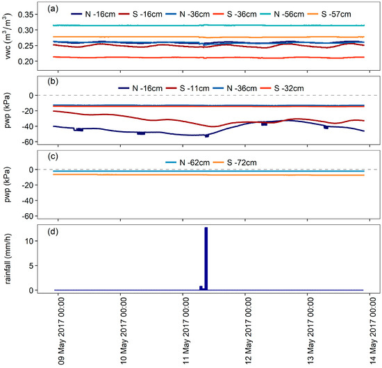 | Volumetric water content | −6, −16, −36, −43 | −6,−16, −36, −57 | −6, −16, −36, −56 | −6, −16, −36, −56 |