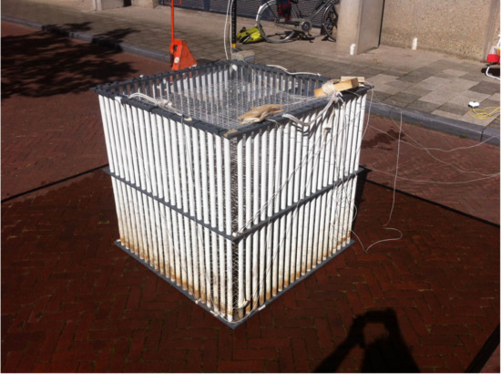 The temperature monitoring setup consisted of a cage construction with 80 vertical bars, spanning a space of 1 m