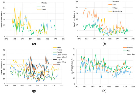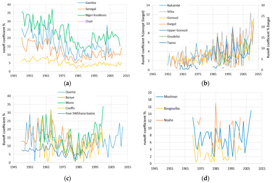 - The first one is composed of great basins, where Sudanian behavior predominates: they showed a strong decrease in runoff coefficient (RC) during the 1968–1995 drought (Figure 4a).