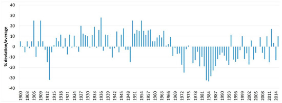 The most severe rainfall deficit ever observed in West Africa lasted until 1993 in the central and eastern Sahel, and until 1998 in the western part of the sub-region [7]. More recent years have been more rainy, and observations indicate that mean annual rainfall from 2006–2015 is close to the 1900–2015 average [7]. Furthermore, the contrast observed by Ali and Lebel [8] and by Mahé and Paturel [9], between the central and eastern Sahel on the one hand, where a “recovery” of rainfall was observed, and the western Sahel still under deficit, seems to have vanished over the last decade.