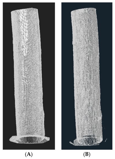 The point clouds obtained from the scans made in laboratory conditions were combined into 3D models (Figure 4).