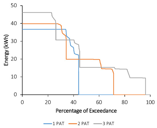 Energy production duration curve for one, two and three PAT installed in parallel.