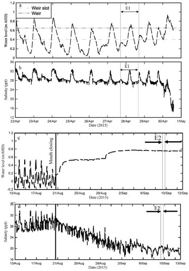 - Gale, E.; Pattiaratchi, C.; Ranasinghe, R. Processes driving circulation, exchange and flushing within intermittently closing and opening lakes and lagoons. Mar. Freshw. Res. 2007, 58, 709–719. [Google Scholar] [CrossRef]