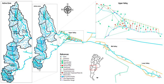 Addressing the natural complexity of watersheds requires modeling tools that represent the relevant physical processes of the hydrological cycle within a watershed. A robust simulation model for water resources planning can adequately describe the complexity of the different activities within a basin [1,2,3,4,5,6,7]. This type of simulation model can capture interacting subsystems such as agriculture, urban areas, and politically-imposed environmental constraints (such as instream flow requirements and the hydrological implications of conservation areas). Multi-component simulation models can represent the non-linearity of key variable changes in a system and the non-separable spatial and temporal dependencies [8,9]. The Water Evaluation and Planning (WEAP) system simulation model [3] has been used to capture the aforementioned aspects in different watersheds around the world [10,11,12,13,14].