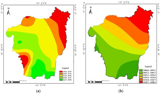 Spatial distribution map of (a) groundwater level and (b) evapotranspiration.