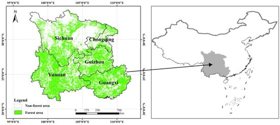 The location of south-western China’s forests. Five provinces in south-western China experienced the 2009–2010 drought events.