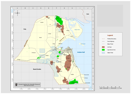 - Mukhopadhyay, A.; Al-Otaibi, M. Development, Analysis and Integration of Hydrological Data in Kuwait (WM010C) Volume 2: Hydrological Maps of Kuwait; Report No. KISR7434; Kuwait Institute for Scientific Research: Kuwait City, Kuwait, 2005. [Google Scholar]