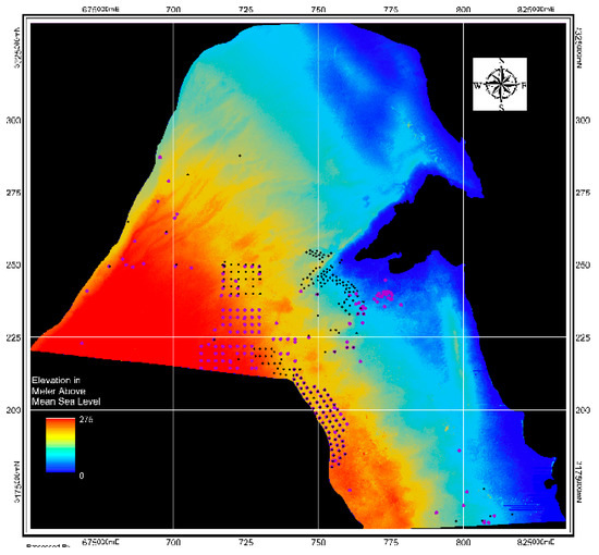 - Geophysique, C.G.D. Shagaya Geophysical Survey; Ministry of Electricity and Water, State of Kuwait: Kuwait City, Kuwait, 1968; Unpublished Report. [Google Scholar]