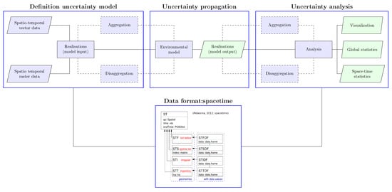 Spatial uncertainty propagation has been addressed in several fields, such as in hydrological and water quality modelling [6,7,8], in scenario analysis [9], and in soil pollution and nutrient modelling [1,10,11]. However, it is recognised that there is not a universal software tool for performing uncertainty propagation tasks [3].