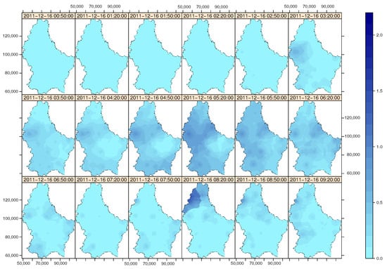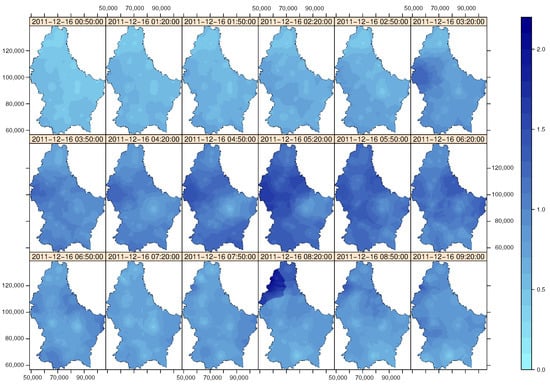 - Gräler, B.; Pebesma, E.; Heuvelink, G.B.M. Spatio-Temporal Interpolation using {gstat}. R J. 2016, 8, 204–218. [Google Scholar]