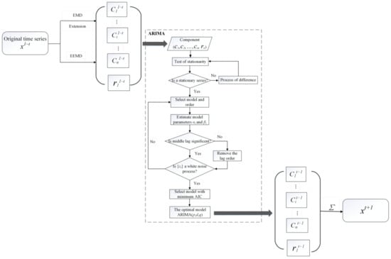 Flowchart of the EMD/EEMD-ARIMA hybrid method for time series prediction.
