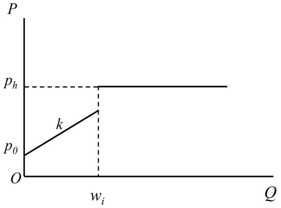 that is, when the consumption quantity of the users is within the initial water right, the water price grows linearly at a slow rate. However, if the consumption quantity exceeds the initial water right (or some of the initial right is sold by the user), the price is determined by the supply and demand relationship of the water rights market. The water rights of primary, secondary, and tertiary industry can be traded in the water market after allocating the initial water rights to each agent, and the water trading price is , which represents the stable water price in the water market.