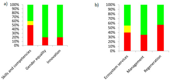The capital achieving the highest-ranking factor and indicator evaluation was human capital (Figure 3a). The indicators “Gender equality” and “Innovation” received largely effective evaluation, revealing a common agreement both in relation to equal treatment of men and women, as well as in the creation of an environment for fostering innovation. The “skills and competencies” factor received varied responses due to the diverse levels of educational status within the PRP.