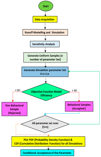 - Rathod, P.; Manekar, V.L. Parameter uncertainty analysis of rainfall runoff model using Monte-Carlo method. In Proceedings of the 20th Congress of the Asia Pacific Division of the International Association for Hydro Environment Engineering & Research, Colombo, Sri Lanka, 29–30 August 2016. [Google Scholar]
