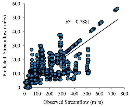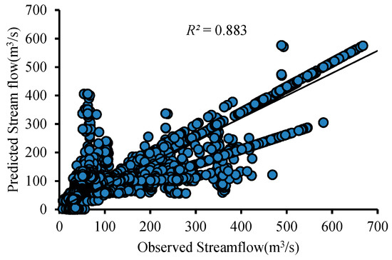 To predict the daily streamflow, the measured precipitation (P) and Temperature (T) with various time (t in days) lags (Tt, Tt−1, Tt−2, Tt−3, Tt−4, Tt−5, Pt, Pt−1, Pt−2, Pt−3, Pt−4, Pt−5) were used as input variables, and streamflow (Qt+1) was used as the output variable.