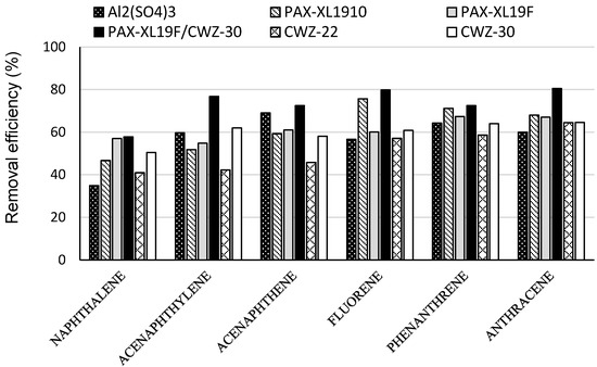 - the application of coagulants Al2(SO4)3, PAX-XL1910, PAX-XL19F and powdered activated carbons CWZ-22 and CWZ-30 was effective in PAH removal in the range of 32.9 (naphthalene) up to 90.5% (indeno(1,2,3-cd)pyrene);