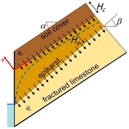 In Equation (5), (L) represents the epikarst thickness, =, with being the epikarst thickness at the foot of the slope.