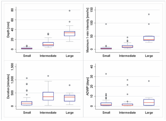 Characteristics of hydrological variables for each event size group.