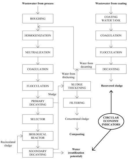 The definition of those indicators is going to be applied to two resources that are recovered during the wastewater treatment process of a paper mill, such as the water and sludge obtained (Figure 1).