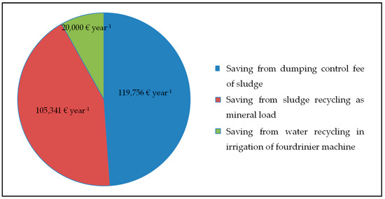 Figure 4. Distribution of savings from the recycling of sludge and water within the circular economy model.