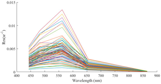 Rrs spectra. Each line represents Rrs spectrum from each station.