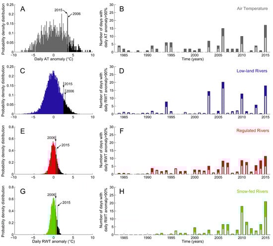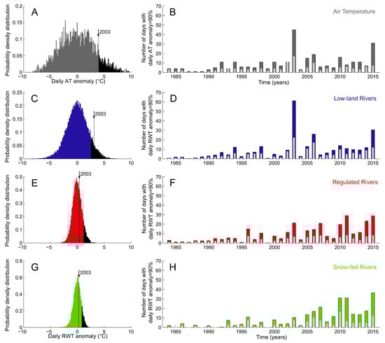 - Orr, H.G.; Simpson, G.L.; des Clers, S.; Watts, G.; Hughes, M.; Hannaford, J.; Dunbar, M.J.; Laizé, C.L.R.; Wilby, R.L.; Battarbee, R.W.; et al. Detecting changing river temperatures in England and Wales. Hydrol. Process. 2015, 29, 752–766. [Google Scholar] [CrossRef]