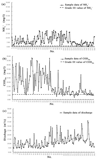 | NH4+ (mg/L) | CODMn (mg/L) | Discharge (m3/s) | Water Temperature (°C) | pH | |