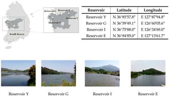 Sampling sites at reservoirs Y, G, I, and E in South Korea.