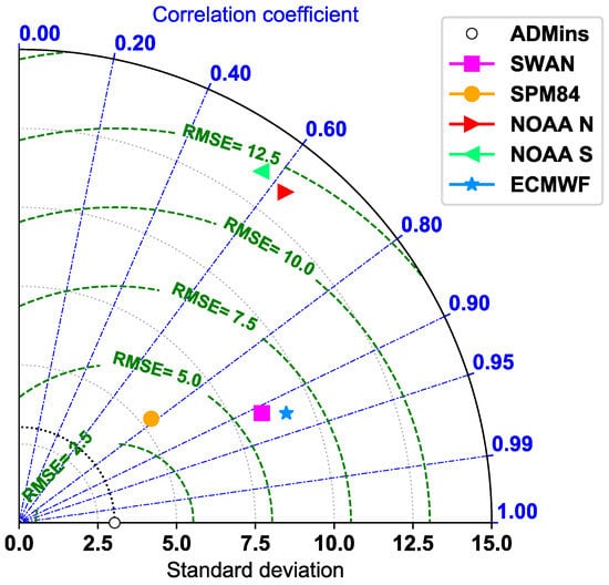 The best performance in terms of the correlation was shown by ECMWF (R2 = 0.856) and SWAN (R2 = 0.831); SPM ’84 was third (R2 = 0.618).