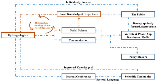 This learning must be fostered by effectively communicating with stakeholders and end-users, which requires a nuanced approach if it is to foster stewardship and engagement on the part of the wider (non-expert) community [49,50,51]. This is one of the obvious spaces for the communication and social sciences to contribute to positive outcomes in socio-hydrogeology research. As such, a brief comment on some of the psychological factors related to this domain is warranted, before a wider discussion of the inclusion of sociological elements.