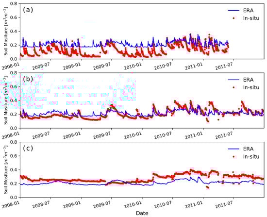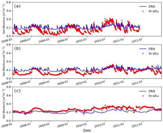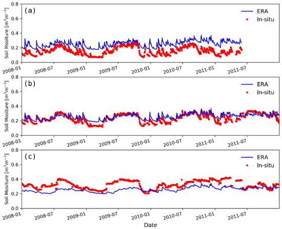 3.1. Performance of ERA-Iterim Soil Moisure at Each Network