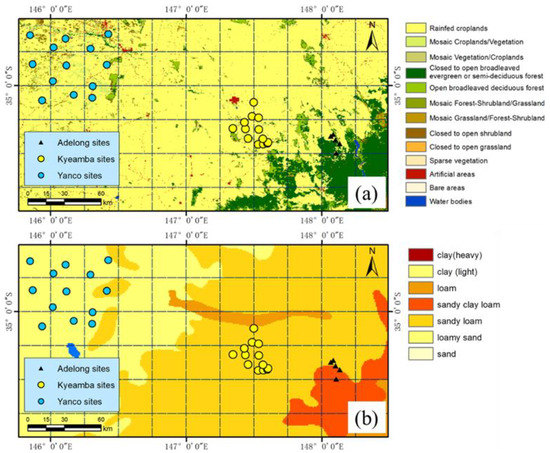 | Y4 | −34.7194 | 146.02 | Croplands | Y11 | −35.1098 | 145.936 | Grasslands |