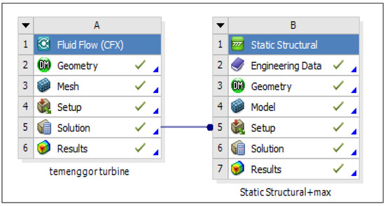 The formulation of the model was conducted and the procedure was implemented using ANSYS® environment, by connecting the ANSYS static structural part that represents the 3D embanked dam model with ANSYS-CFX part, including one turbine unit of the powerhouse that represents main part of the dam. This combination was used to find the effect of the operating turbine to the dam body. Figure 3 shows the ANSYS software graphical user interface (GUI) options (connection between CFX and static structural parts).