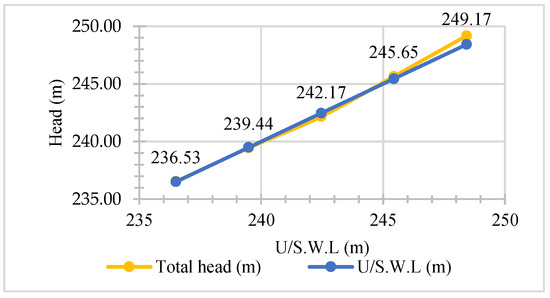 Figure 9 outlines the comparison between the total head estimated from numerical models with the upstream water levels. The results show that the maximum difference between the total head estimated from running the model and the upstream water level at the inlet of Temenggor turbine models was 0.75 m with an acceptable percent of error 0.3%.