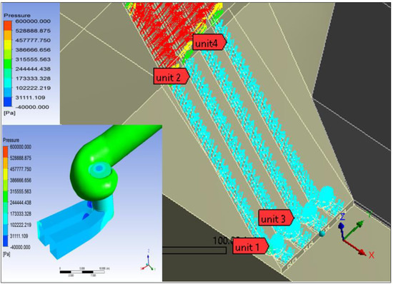 Figure 12 outlines the sequence and locations of the four turbine units in the Temenggor dams, with pressure distribution on the turbine units that transformed from turbine model to the dam body. The results show that the pressure decrease gradually from the inlet to the outlet of the units.