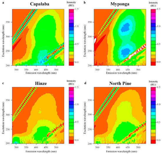 - Hudson, N.; Baker, A.; Reynolds, D. Fluorescence analysis of dissolved organic matter in natural, waste and polluted waters—A review. River Res. Appl. 2007, 23, 631–649. [Google Scholar] [CrossRef]