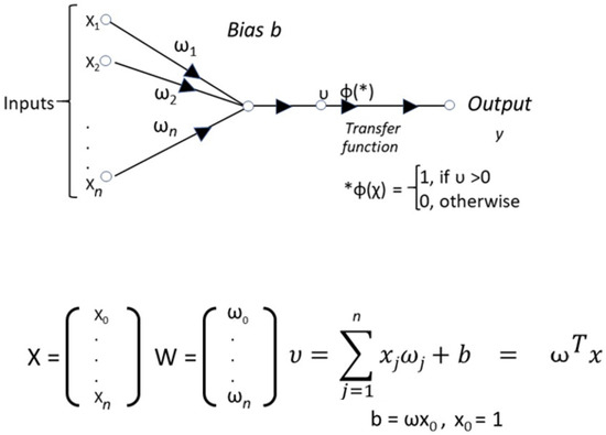 where φi is the output of the ith node (neuron) and υi is the weighted sum of the input connections [53]. MLP training identifies the weight, ωij, for each layer based on the network learning (Figure 3).