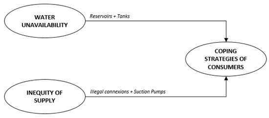 - Social and political problems: Illegal connections and other customers’ coping strategies [10,39,46,47]; Inequity of water supply [7,10,48,49]; Water wastage [5,7];