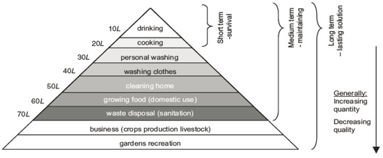 - WHO Regional Office for South-East Asia. Minimum Water Quantity Needed for Domestic Use; Mahatma Gandhi Marg: New Delhi, India, 2005. [Google Scholar]