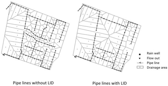 The pipeline drainage system at the LCTIP with and without low impact development.