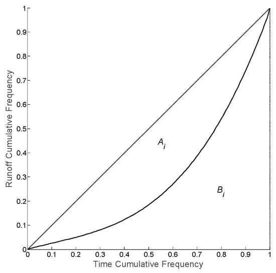 - The ith year runoff Gini coefficient GIi is computed as:where SAi and SBi are the area acreages of Ai and Bi, respectively.