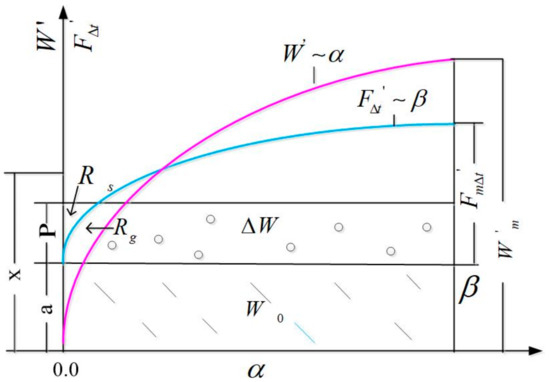 During most rainfall runoff events, excess infiltration and excess storage often occur alternatively. Infiltration runoff occurs when the rate of the intensity of the rainfall exceeds the infiltration rate, while saturation runoff occurs if the soil water content goes beyond its field capacity [1,19,21]. Figure 1 shows the schematic diagram of the runoff method. The curve represents the special heterogeneity of the tension water capacity (TWC), which is determined by the specific watershed and is unalterable. The curve represents the spatial distribution of the soil infiltration capacity (SIC). It is based on the soil water content and varies during different time intervals. With changes in the precipitation and soil moisture content, the curve changes, which makes the Rs (SR) and Rg (groundwater runoff, GR) different. X is the distance from the intersection of curve and curve to the origin. These two curves can be presented using the following equations: