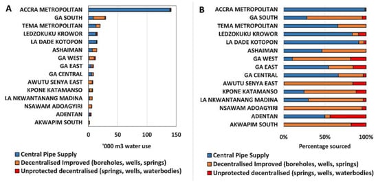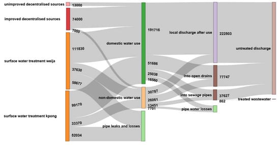 | Non-domestic water use | (10) | proportion of distributed water used by non-domestic users by sector | Medium—estimates from Ghana Water Company Limited | (2.1.4, 2.2.4) | |||