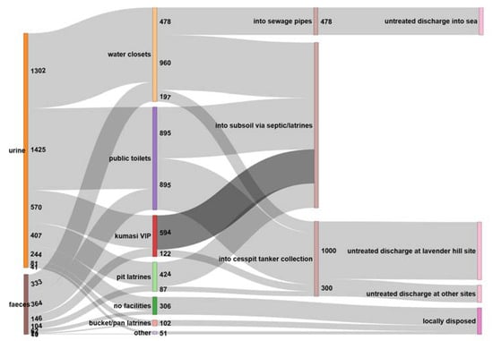- Montangero, A. Material Flow Analysis—A Tool to Assess Material Flows for Environmental Sanitation in Developing Countries; Eawag: Dübendorf, Switzerland, 2007; Available online: https://www.eawag.ch/fileadmin/Domain1/Abteilungen/sandec/schwerpunkte/sesp/ESRISS/pdfs/mfa_guidelines.pdf (accessed on 6 October 2017).