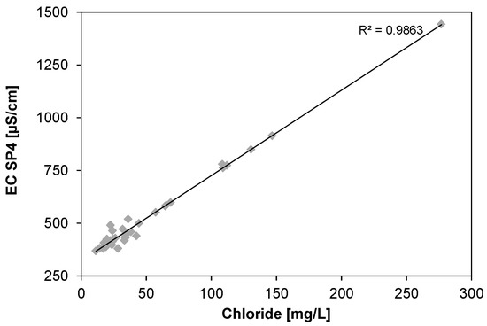 Correlation between conductivity and chloride concentration in treated water (SP4).