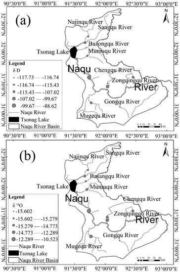 Spatial variation of stable isotopic enrichment in the Naqu River basin.