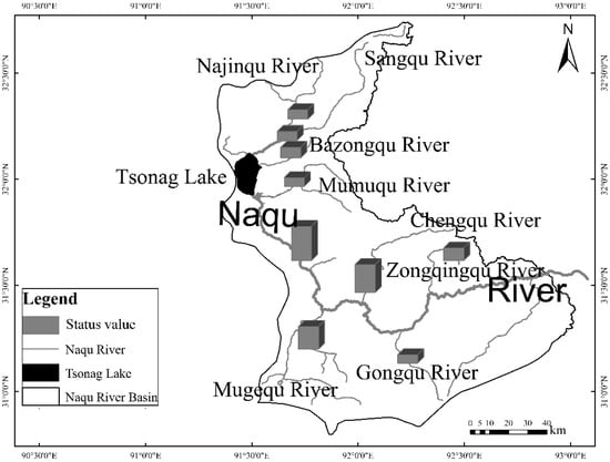 As shown in the Figure 4, it could be seen that the status values of the Najinqu, Bazongqu, Mumuqu, Chengqu and Gongqu Rivers were small, indicating that these tributaries were strongly supplemented by precipitation and snowmelt. The level of status value in the Mugequ River was 2.62 with a high level. In the lower reaches of the lake, the stable isotopes in the river were more abundant due to the evaporation of the lake and the role of stable isotopic fractionation.
