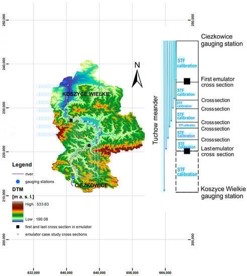 In addition, the HBV model was also used for the entire catchment closing at the Koszyce Wielkie gauging station to estimate the ungauged tributaries to the Biala reach between Ciezkowice and Koszyce Wielkie. The optimal model parameters for the whole catchment were obtained from [] and are presented in Table 1.