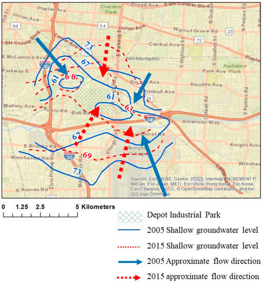 - Carmichael, J.K.; Parks, W.S.; Kingsbury, J.A.; Ladd, D.E. Hydrogeology and Ground-Water Quality at Naval Support Activity Memphis, Millington, Tennessee; US Geological Survey Water Resources Investigation; 1997. Available online: https://pubs.usgs.gov/wri/1997/4158/report.pdf (accessed on 20 December 2018).