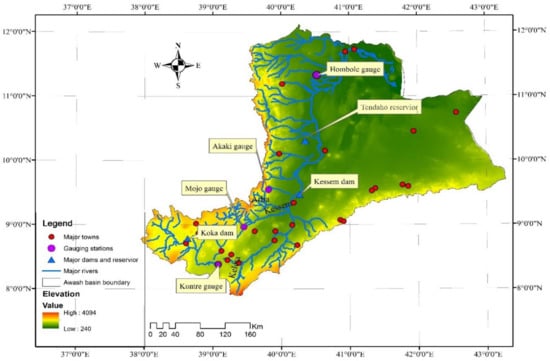 Location map of the Awash River Basin.